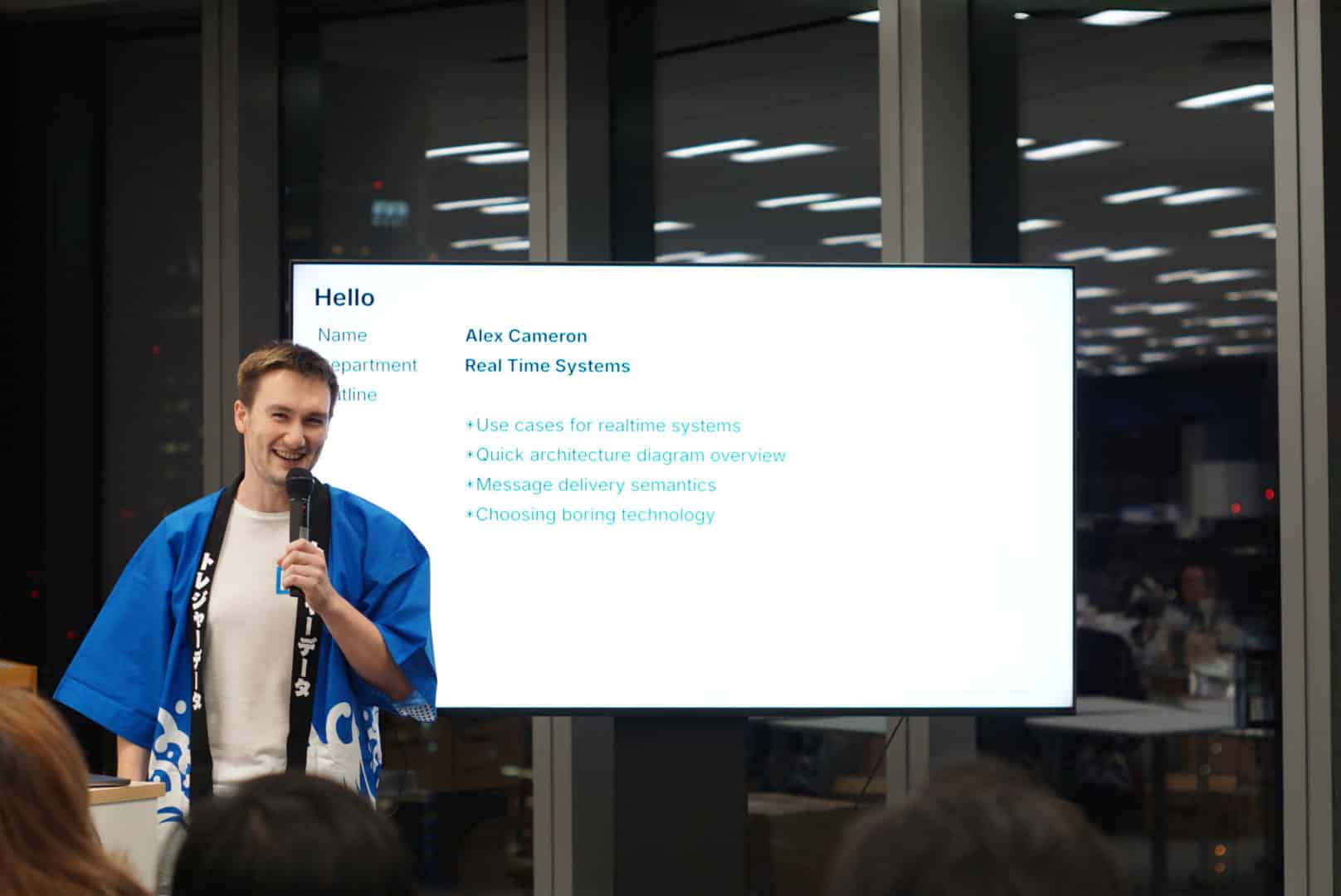 - Alex Cameron closed out the technical presentations with a session on “Realtime Stream Processing,” delving into the complexities and best practices of building systems for high-speed, low-latency data streams.