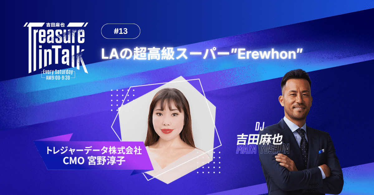現役プロサッカー選手であり、トレジャーデータの公式スポークスパーソンも務める吉田麻也氏が、リスナーの皆様と共に人生の宝物(トレジャー)を探していく本番組では、後半のMMMコーナー『麻也と学ぶマーケティング』で、弊社CMOの宮野淳子が、マーケティングの基礎を分かりやすく解説しています。
