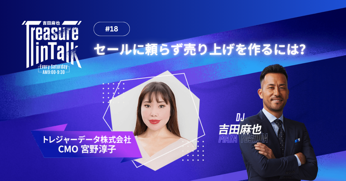 現役プロサッカー選手であり、トレジャーデータの公式スポークスパーソンも務める吉田麻也氏が、リスナーの皆様と共に人生の宝物(トレジャー)を探していく本番組では、後半のMMMコーナー『麻也と学ぶマーケティング』で、弊社CMOの宮野淳子が、マーケティングの基礎を分かりやすく解説しています。
