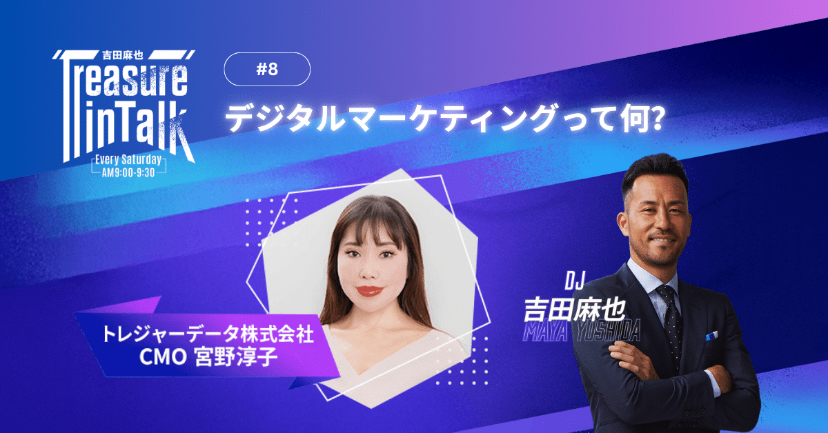 現役プロサッカー選手であり、トレジャーデータの公式スポークスパーソンも務める吉田麻也氏が、リスナーの皆様と共に人生の宝物(トレジャー)を探していく本番組では、後半のMMMコーナー『麻也と学ぶマーケティング』で、弊社CMOの宮野淳子が、マーケティングの基礎を分かりやすく解説しています。