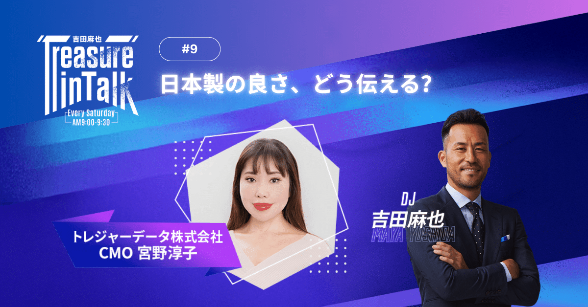 現役プロサッカー選手であり、トレジャーデータの公式スポークスパーソンも務める吉田麻也氏が、リスナーの皆様と共に人生の宝物(トレジャー)を探していく本番組では、後半のMMMコーナー『麻也と学ぶマーケティング』で、弊社CMOの宮野淳子が、マーケティングの基礎を分かりやすく解説しています。