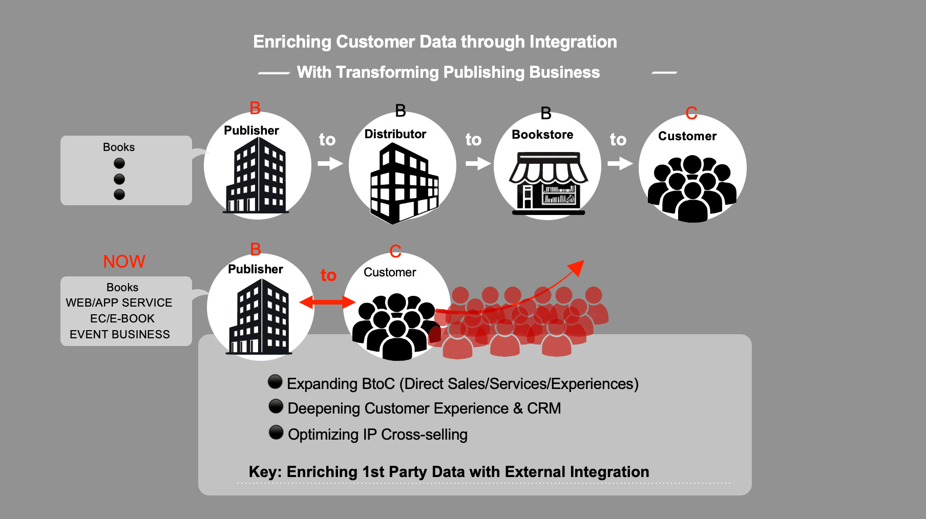 一方で、自社運営のECやマンガアプリは、完全なBtoCビジネスだ。「ここ数年で立ち上がった出版社の新規事業の多くはBtoCビジネス。大量の顧客データを取得できるようになり、顧客に直接アプローチできるようになった」と、石塚氏は語る。