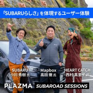 「PLAZMA SUBAROAD SESSIONS」第2回は、SUBARUの小川氏が聞き手に回り、マップボックス高田氏と、トレジャーデータの堀内健后が語り手の席につく。地図の奥深さ。ユーザーと向き合うことを突き詰めて考え続けること。新規事業の難しさと、情熱のあり方。熱量をもった人同士が出会うこと。台本のない自由な対話から、新しいビジネスを駆動するための示唆が次々に現れる。3人のセッションは、多岐にわたる話題をドライブしていく。
