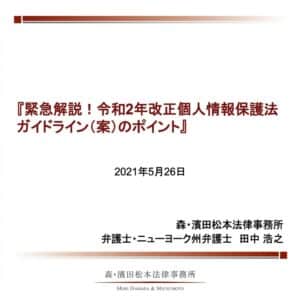 2021年5月19日、個人情報保護委員会より2022年4月1日に施行される改正個人情報保護法のガイドライン案が発表されました。森・濱田松本法律事務所の田中浩之弁護士がこのガイドライン案を速報的に解説しました。