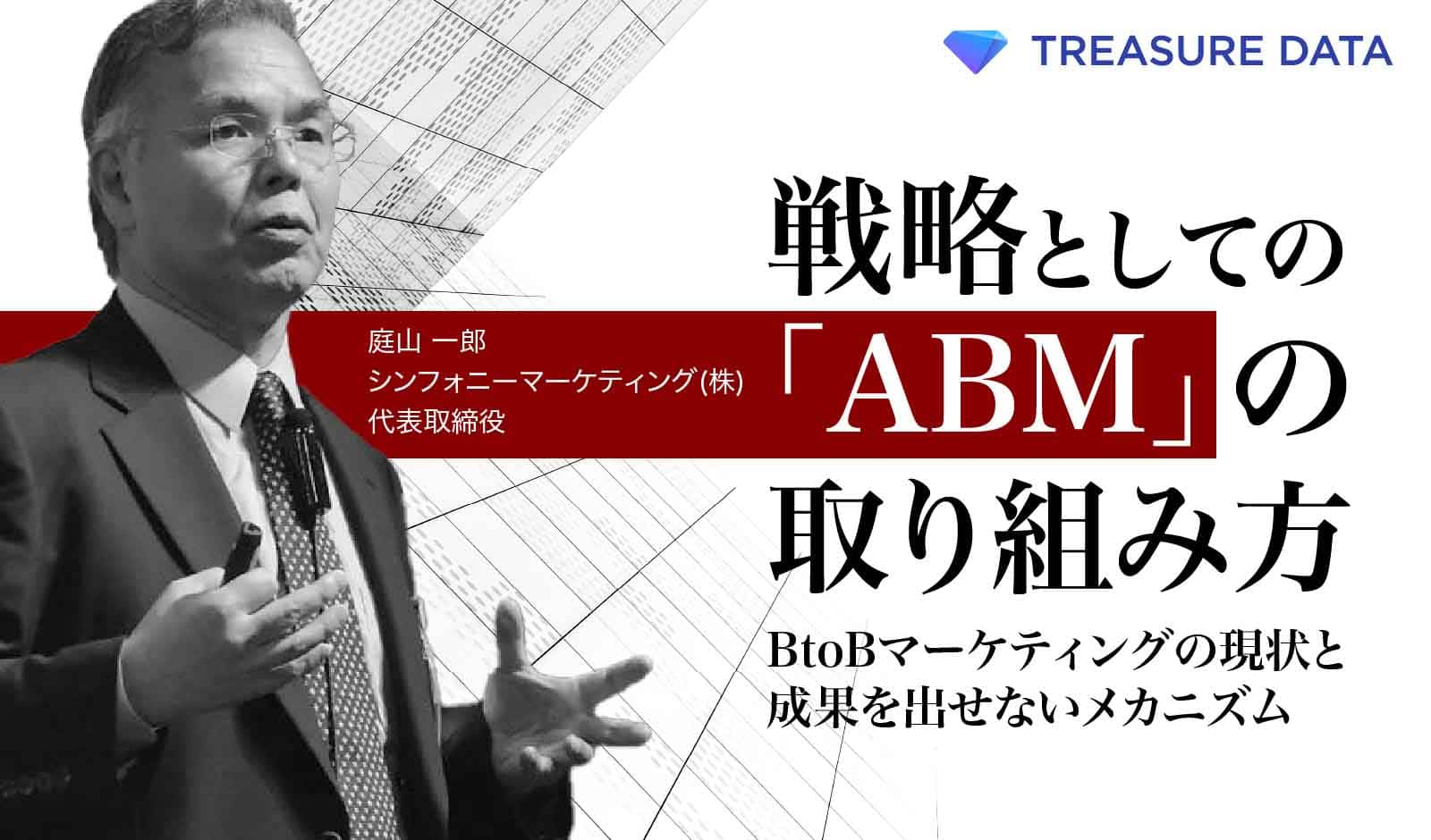 300社以上のBtoB企業のマーケティングコンサルを手がけたシンフォニーマーケティング株式会社の庭山一郎氏が、全社戦略としてABMに取り組むための手がかりを紹介しました。聞き手はトレジャーデータ株式会社の堀内健后が務めました。