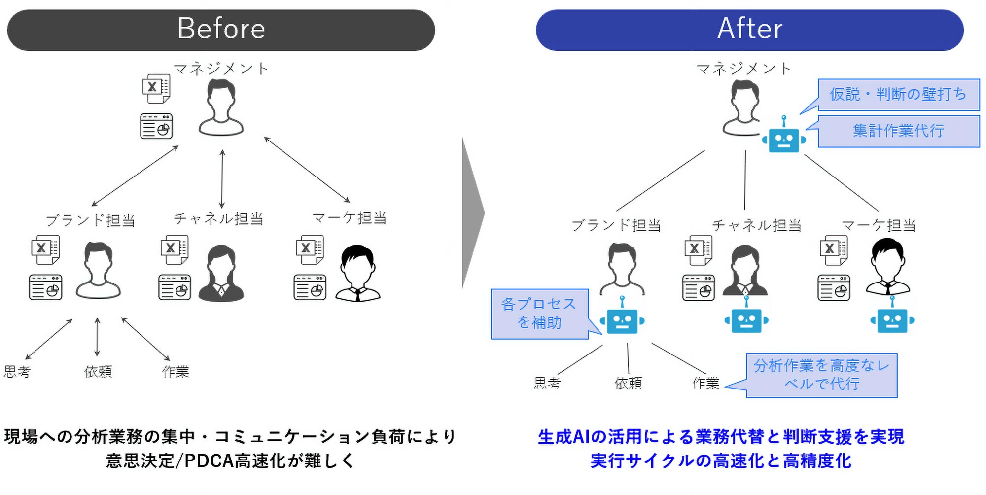 この両機能を組み合わせることで、マーケティング部門の施策の高度化だけでなく、施策結果の財務インパクトを明確にすることで、経営層による迅速な意思決定支援までを視野に入れた新しいデータ活用体制を構築します。