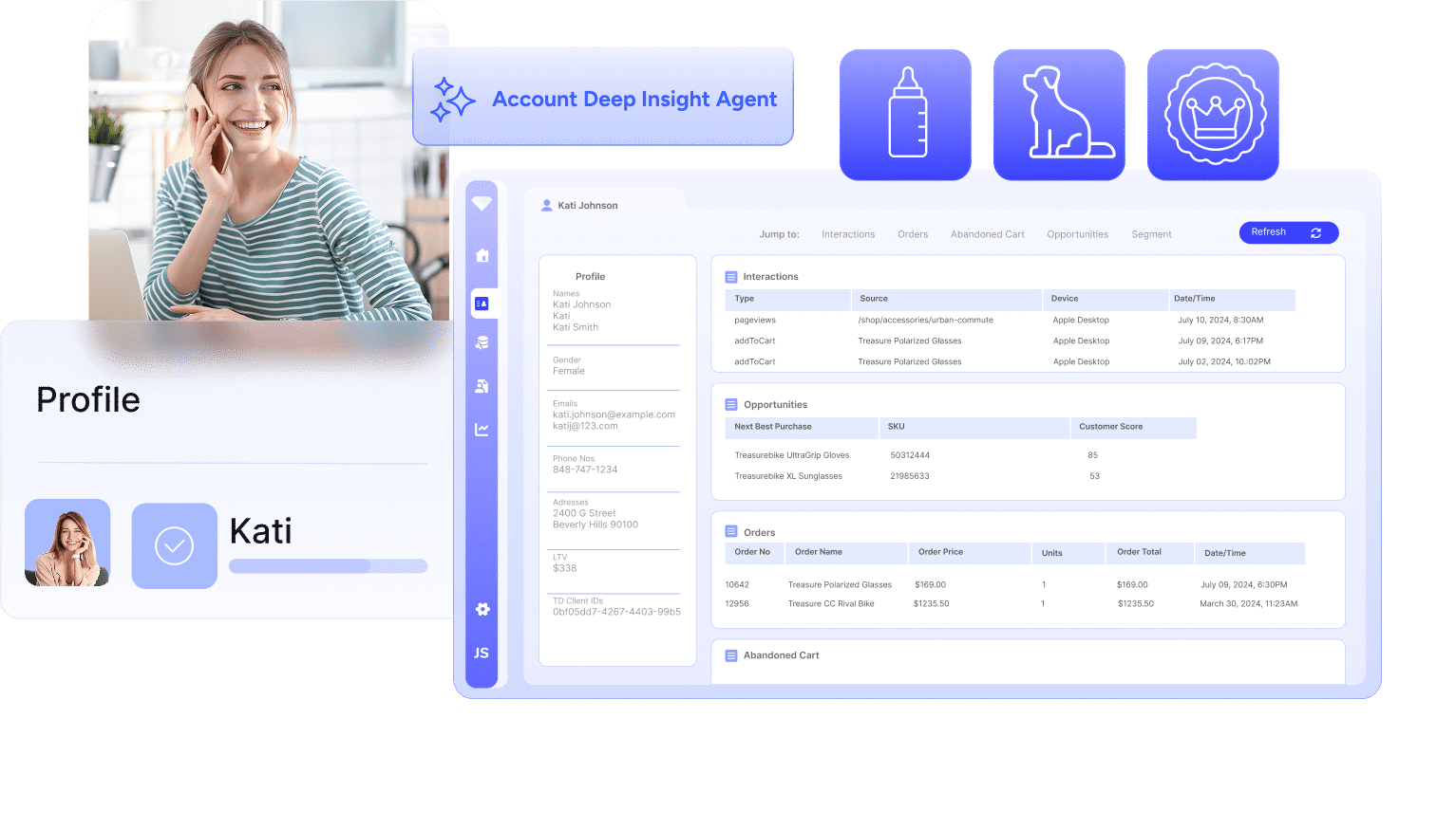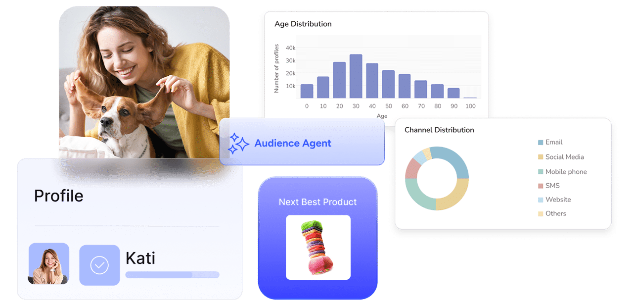 - すべてのAI機能は、「ダイヤモンドレコード」 に基づいています。これは、すべての顧客に関する完全で信頼性の高いビューであり、マーケティングチームが高精度で予測とパーソナライゼーションを行うことを可能にします。